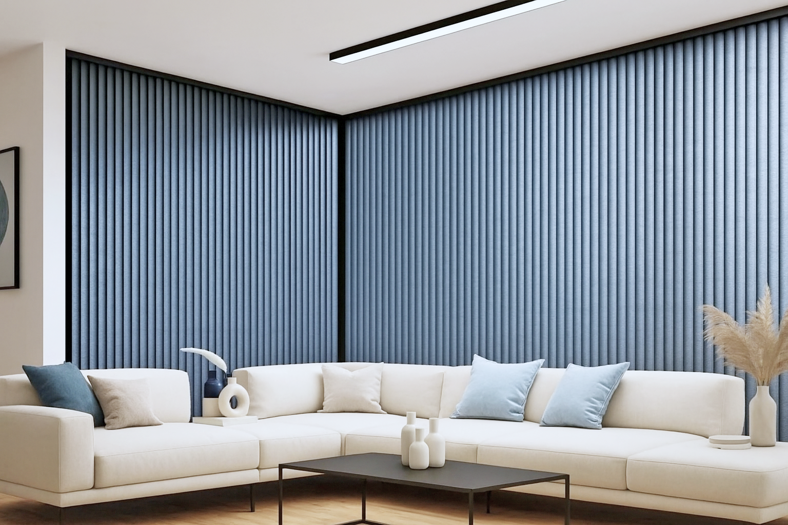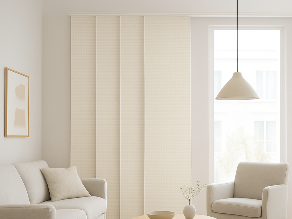 若窗戶寬度大、光線強或需要柔和採光,直立簾會比一般布簾、捲簾更乾淨俐落