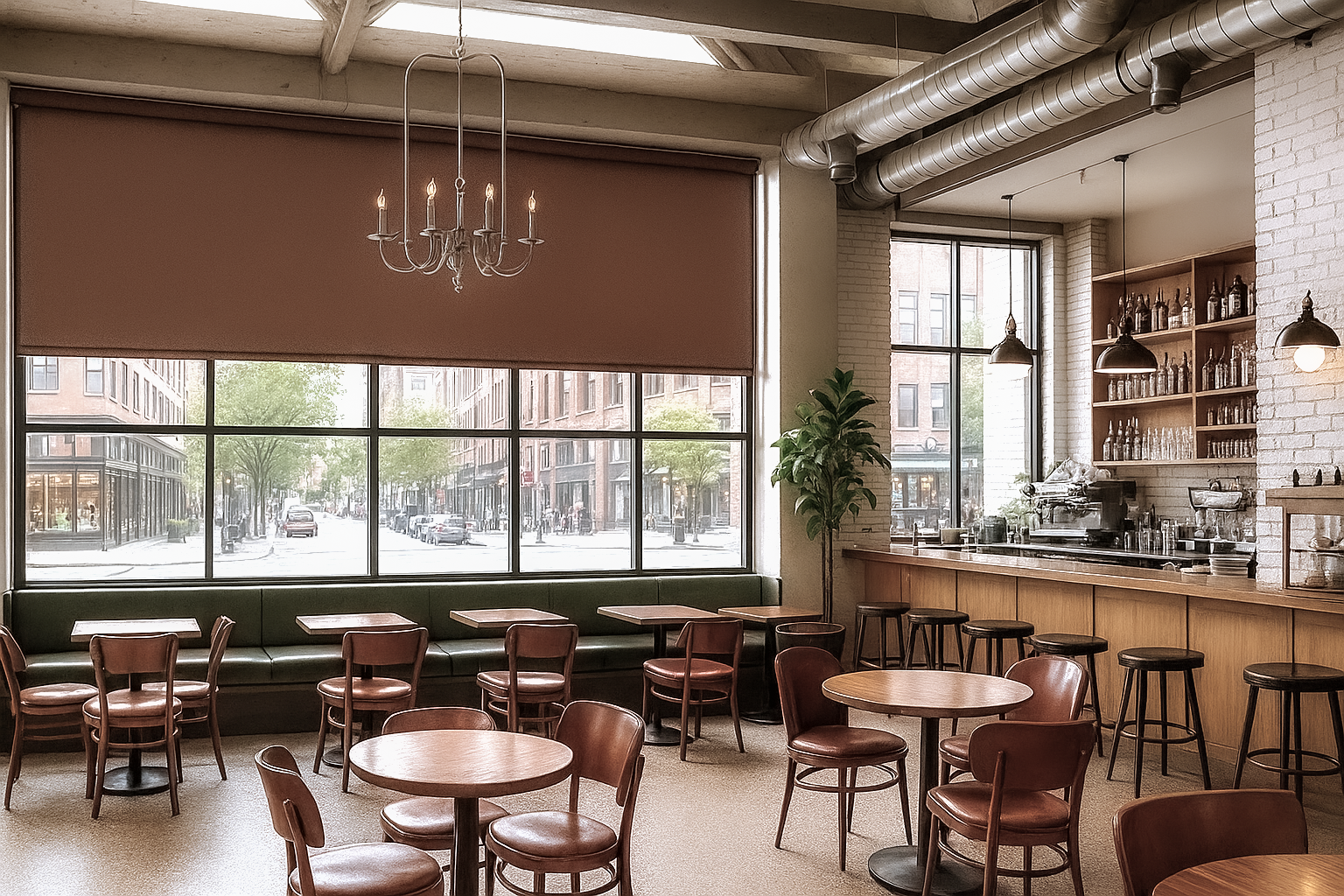 暖棕色捲簾替城市光線加上了一層柔軟的濾鏡。街道的喧囂被隔在窗外,只留下一種恰到好處的靜謐。